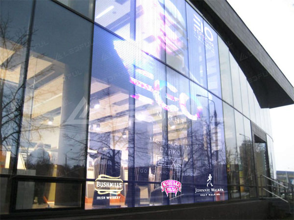 We can see LED film screen used for advertisement everywhere. For example, there are many shopping malls, plazas and stores installing LED film for their product and service promotion which has the advantages high brightness, transparency, and interactivity and it can attract people’s attention.