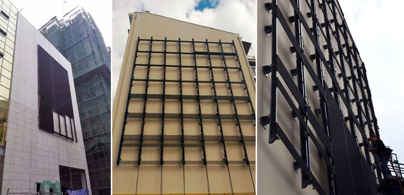 LEDFUL Outdoor ST15S LED Transparent LED Screen installed in Russia which includes 210pcs 500x1000mm cabinets.