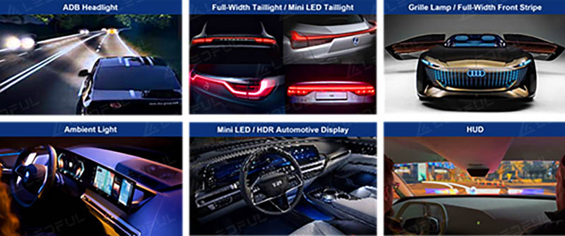Inflation in Europe and the United States will slow down in 2023, but the global economy remains weak. Automakers cut prices to stimulate buying momentum, but it also brought the overall auto market into a cycle of price competition. When the auto market enters a cycle of price competition, automakers have slowed down the layout of Mini LED / HDR automotive displays, and are actively moving towards automotive lighting applications (headlights, taillights, grille lights / full-band front light bars). In the long term, with the trend of high dynamic contrast (HDR), local dimming (Local Dimming), wide color gamut, and curved surface design, Mini LED / HDR automotive display promotion car manufacturers include General Motors, Ford , BMW, Mercedes-Benz, Volvo, NIO, Roewe, Ideal, etc., adopting LED specifications including 2016 / 3030 / 2525 / 1515 LEDs, etc.
