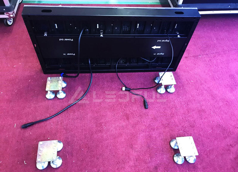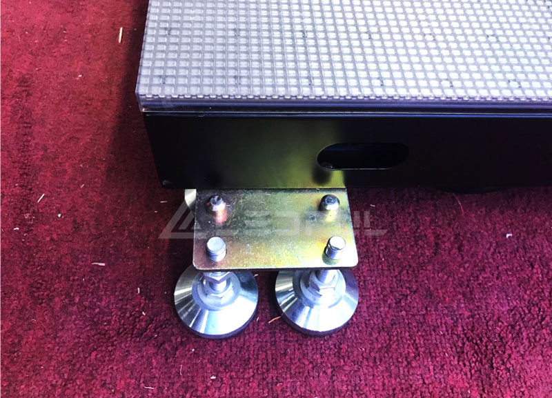 Attention: As shown in the picture, the base we provided can ensure the dance floor screen fixing and its flatness adjustment. According to the space we designed, clients can use the base to test it first, and understand the docking of the base positioning column and the cabinet positioning hole before installation to ensure that the subsequent installation is convenient and quick.