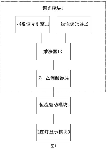 The patent abstract shows that the present invention discloses an LED lamp dimming system and a dimming method, including a dimming module, a constant current drive module and an LED lamp display module connected in sequence. The dimming module includes an exponential dimming engine, a linear Dimmer, multiplier, ΣΔ modulator; the dimming module converts the input intensity level and dimming value into a brightness value digital signal, and converts the brightness value digital signal into a PDM signal. The dimming module The output PDM signal drives the constant current drive module to output the corresponding current, thereby driving the LED light display module to work. (Compiled by LEDinside Irving)
