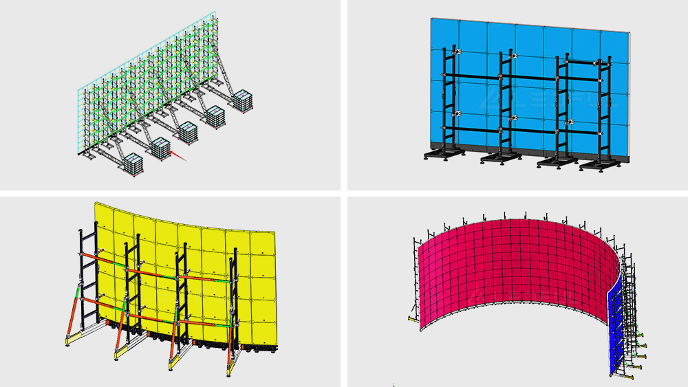 It is used for hanging installation, when the event location is relatively empty or the stage is high, we can choose Truss, but if it is a curved screen to use Truss, we need to customize the Truss according to the curvature of the screen , and it can not be folded and bent.