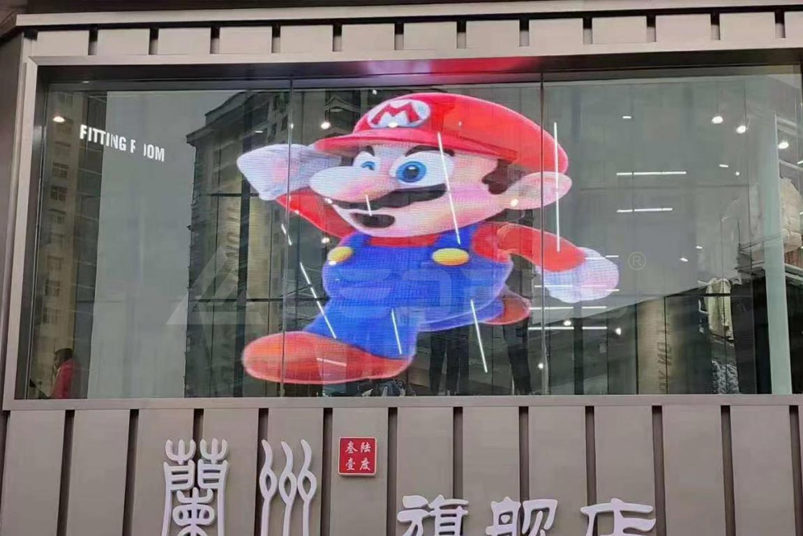 Transparent LED display can be also installed on the door head and side wall, and the customer experience is also good. In large shopping malls, in addition to the LED transparent screen on the ceiling, the transparent LED display screen can be also the head of the stores, which is very cool.