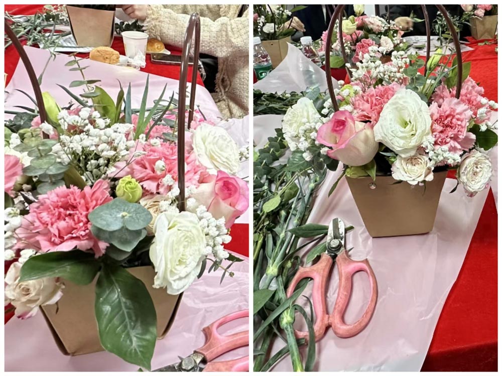 Under teacher’s guidance and helping each other, everyone made an amazing flower arrangement.