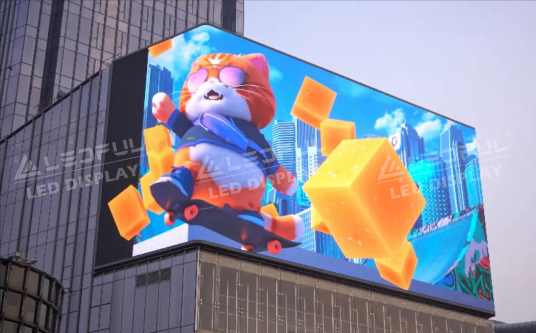 Secondly, the naked-eye 3D large screen can realize the dynamic display of virtual IP images. Compared with traditional static display methods, naked-eye 3D large screens can display the diversification and changes of virtual IP images through animation, video, etc., increasing attraction and interest. For example, cities can display local traditional festival activities, local tourist attractions, etc. through naked-eye 3D large screens, allowing people to feel the vitality and charm of the city.