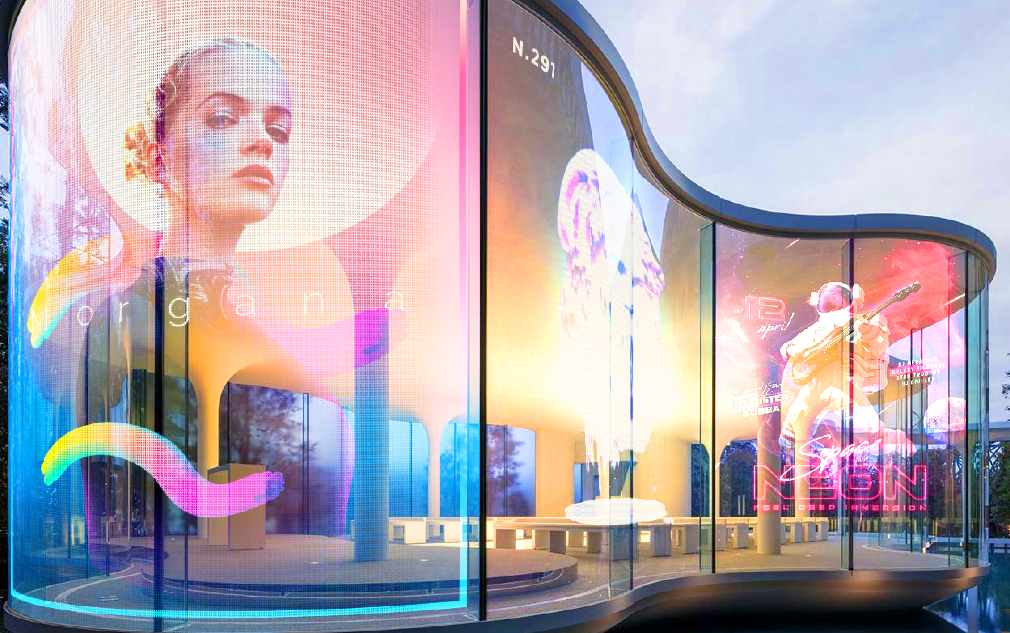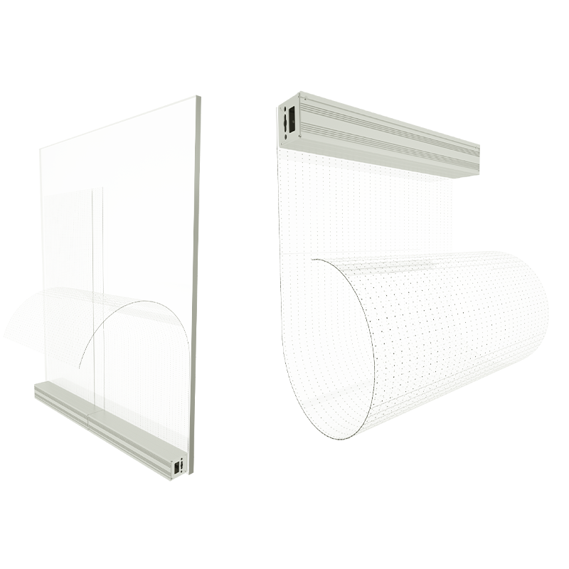 A series film screen is the new standard in window applications, offering a super thin and super light design, brings superior apperance with its self-adhesive feature on the glass. This screen can be easily pasted on glass surface without any additional steel structure. The wiring for power and signal cables can be hidden naturally in the power box. Support convex and concave curvatures up to 1100R. Suitable for flat glass and curved glass. Pixel pitch ranges from P5 to P20, offering numerous choices for different scenarios. Can deliver advertising and show indoor products at the same time.