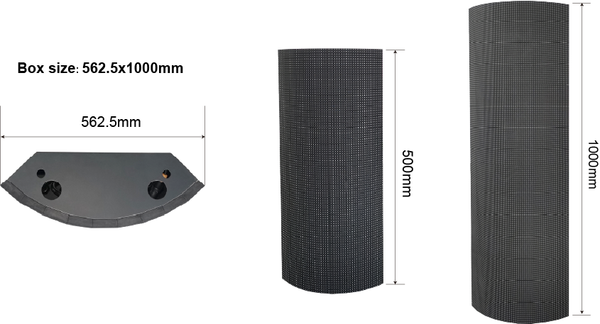Customized small modules, size 62.5x250mm. Narrow cabinet size 562.5x1000mm. Super small modules make seamless corner cabinet, smooth transition, no black seam, perfect splicing, best choice for 3D application, 100% displays the best effect of 3D video.