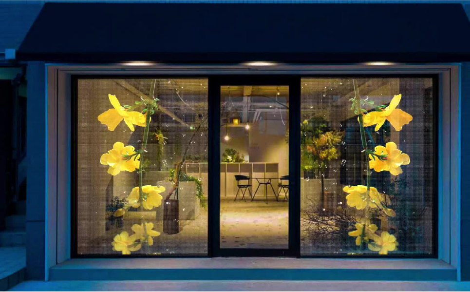 The transparency of HIS series can reach more than 90% which is totally invisible, because there is no any frame in the middle of LED screen. So it does not affect the penetration of sunlight or people’s sight when viewing from indoors or outdoors. The newfangled holographic images will bring the advertising better performance.