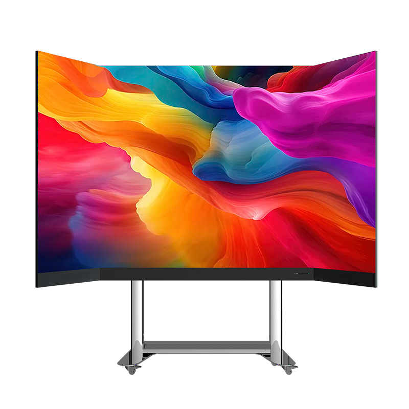 The standard size of LFCPoster is 136 “(3×1.6875m), which displays 2K contents and can also accept customization. The bottom is equipped with a bracket and wheels, when you need to move, you can push the LED display, when you need to stop, you can step on the brake, it will not easily shake or fall. The whole product needs 1 to 2 power cables, no installation, can be controlled by projection, can also be connected to the computer through network cable or HDMI cable, and can be connected to WIFI for Internet operation. The product can be lifted or folded through the remote control or button to reduce space, enter and exit the elevator through flight case, so it can be used for related rental activities very well.