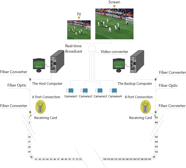 PM PLUS series can do signal and power backup solution, if there is any damaged of power supply, receiver card or LAN cables, the backup receiver card or power supply will connect and work normally, so the perimeter LED screen is still working normally without any problems, which is an important feature for some large sport events.