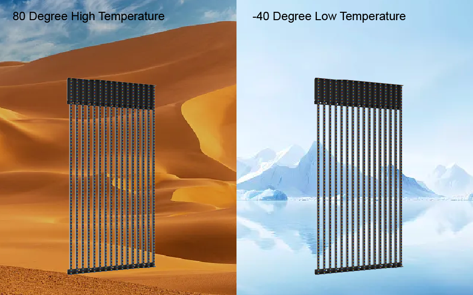 The protection grade of strip LED mesh can arrive at IP67, totally anti-dust and waterproof. With an operational temperature range from -40°C to 80°C, the LED mesh is capable of withstanding extreme conditions. This makes it particularly suitable for use in regions with harsh climates, such as the freezing cold of Russia or the intense heat of the Middle East.