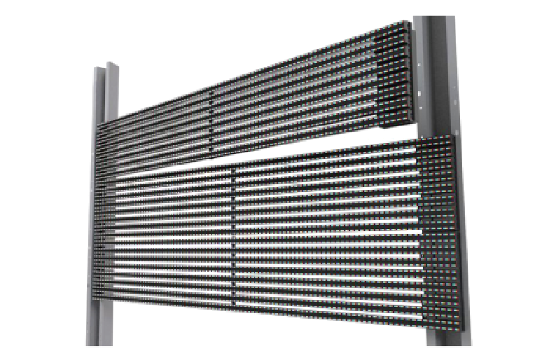Strip Transparent LED Mesh is lightweight and thin, making it suitable for installation on building facades, windows, and other applications where maintaining permeability is important, while also reducing the load-bearing requirements of the building.