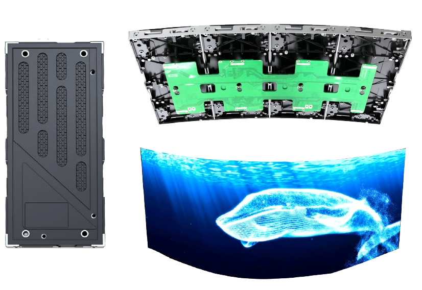 Support curved design, to use special small modules 150×168.75mm and special cabinet 150×337.5mm