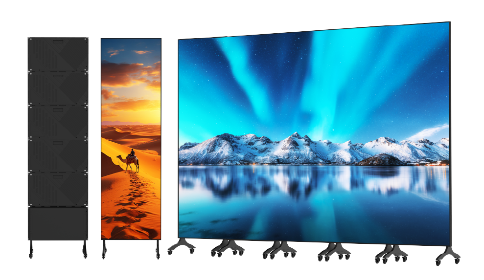UPoster plug and play, free standing, movable, seamless cascade, all-in-one LED display.