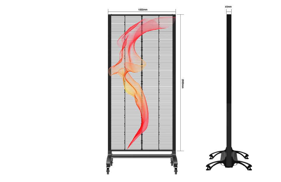 Designed with high-quality aluminum, integrated vertical structure design, moveable wheels design, can be moved freely in different scenes. Super light and thin, 30kg light weight and 45mm thin thickness. Support 3D effect display, bringing better visual impact.