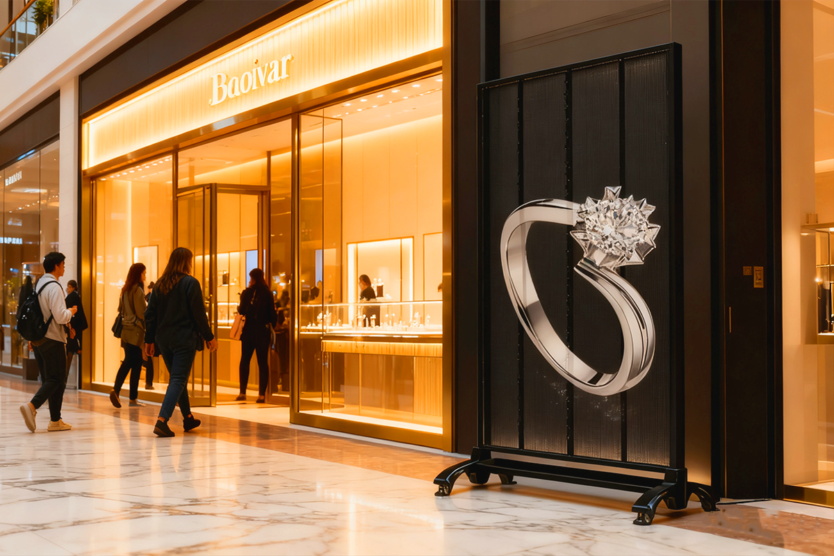 With 70% high transparency, TPoster is an ideal choice for show windows. It is particularly suitable for jewelry stores, luxury boutiques, and similar high-end retail environments, showing advertising videos while elegantly highlighting in-store products.