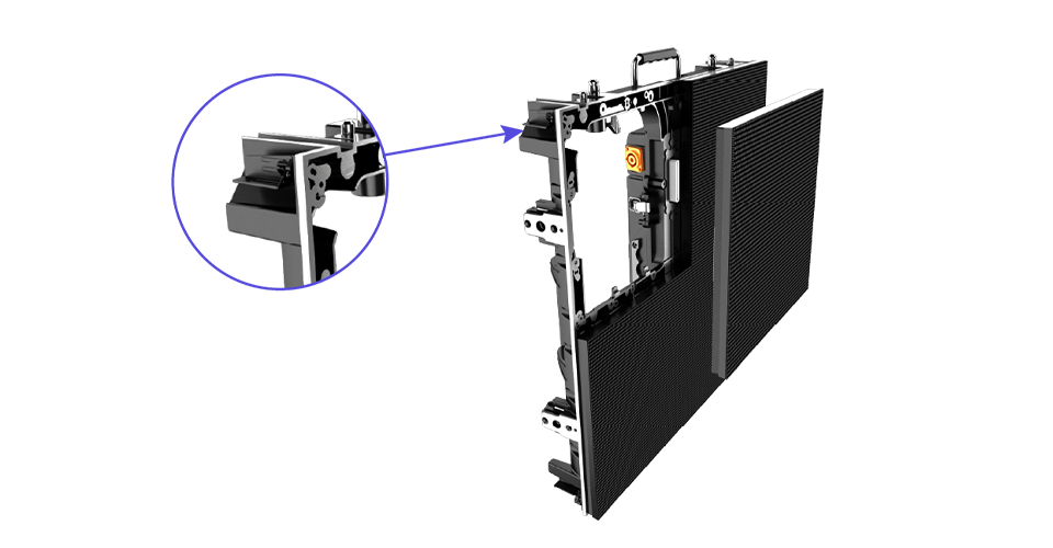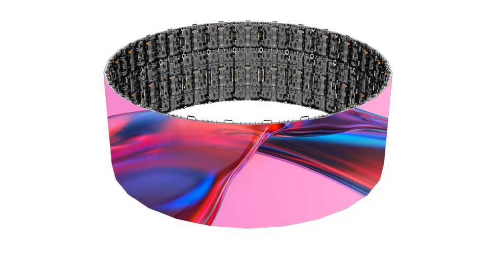 Born to rent curved screens, 500X500mm cabinet size, 250x250mm flexible module, one cabinet can be bent 45°, 8 cabinets can make a circle. curved surfaces are smoother with smaller gaps and better aesthetics. Self-adjustable lock that has lock and unlock status.