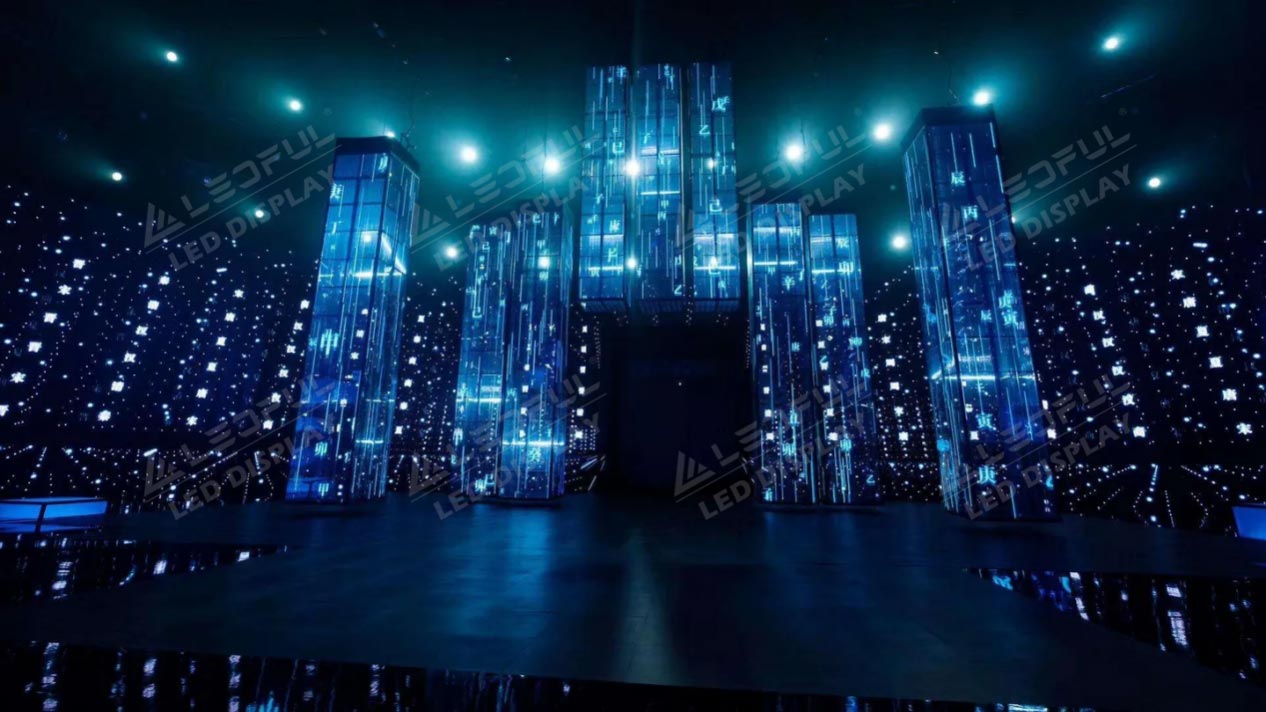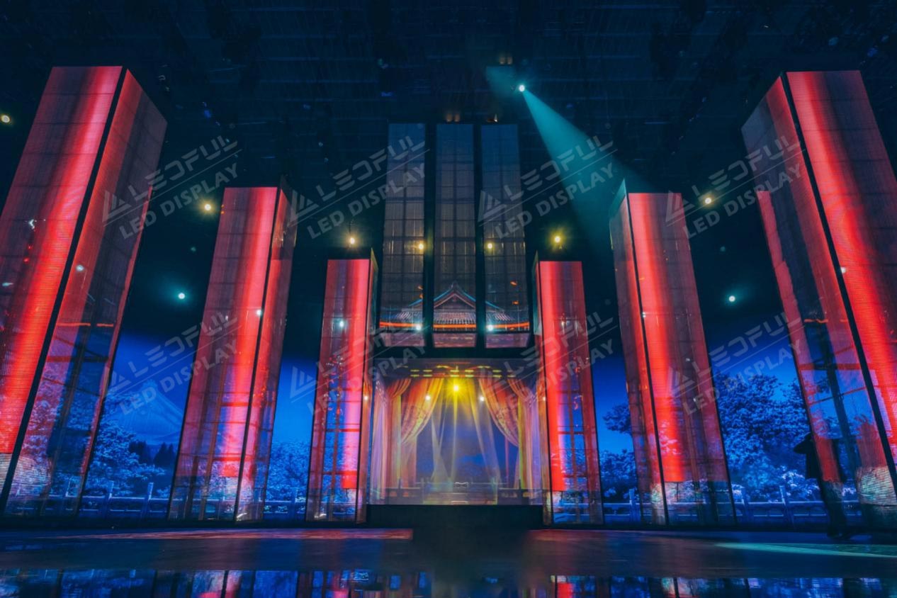 1. Eye-catching: Transparent rental screen can attract people’s attention because of their unique appearance and ability to simultaneously display content and see through the screen. This makes them very eye-catching in advertisements and displays.