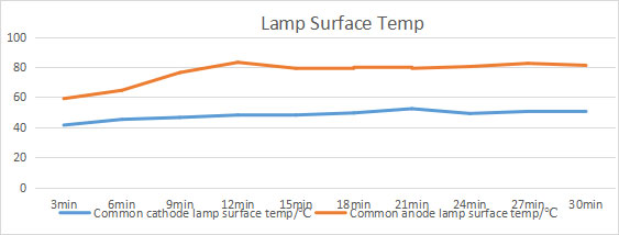 | Time | Common cathode lamp surface temp/℃ | Common cathode PCB temp/℃ | Common cathode temp/℃ | Time | Common anode lamp surface temp/℃ | Common anode PCB temp/℃ | Common anode temp/℃ |