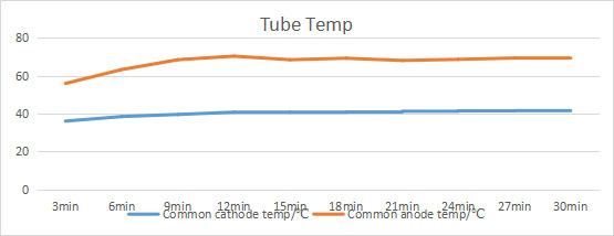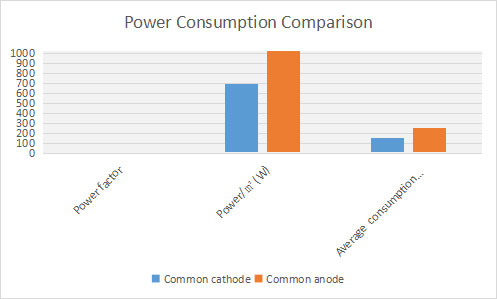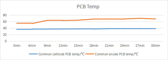 | Result analysis: The common cathode solution is about 20 degrees Celsius lower in temperature than the conventional common anode solution. | |||||||